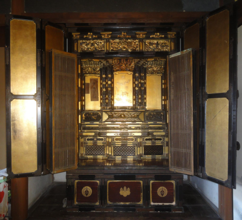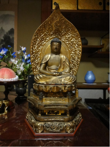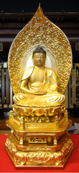 長年お参りされたお仏壇の本尊様を洗浄して、下地・塗り・金箔を施しました。